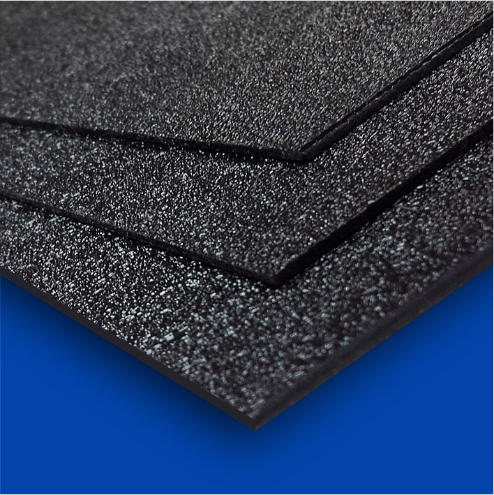 Acrylonitrile Butadiene Styrene (ABS) is a black thermoplastic which becomes flexible and moldable above a specified temperature and solidifies when cooled. It is widely used in the process of heat press molding and vacuum forming to make everything from knife sheaths to molded automotive parts. Sheets come in variety of thicknesses and have a gloss finish on one side and a textured finish on the opposite side.